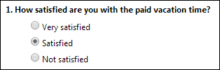 Radio buttons | Each response includes: Survey meter bar graph Number of responses Percent of total responses | |