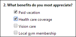 Check boxes | Each response includes: Survey meter bar graph Number of responses | |