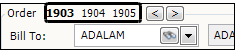 Clicking on the order number in the Order section (next to the arrow buttons) will not switch between orders. However, you can click on a stop in the Stops grid to determine the associated order number. The order number will appear in bold font.