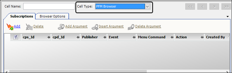 4. In the Cell Options Editor pane’s Cell Type field, select PFM Browser.