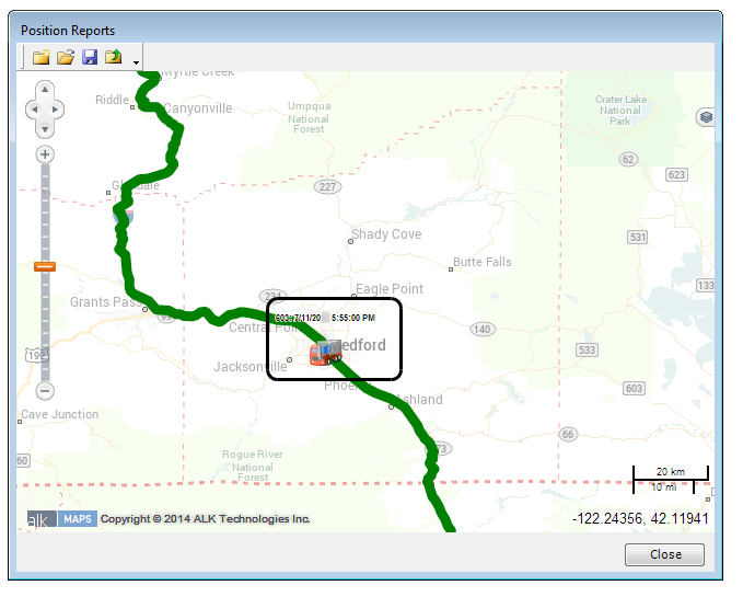 ALK® Maps is a JavaScript API (application programming interface) for interactive visualizations that is designed for the transportation industry. You can set up TMW Operations to use ALK Maps so that you can view and track trip and resource data on a graphical map.
