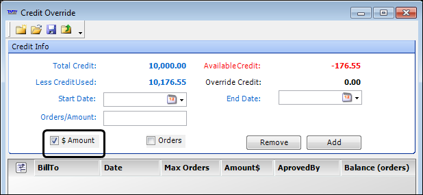 Note: You can view a history of credit overrides issued to the Bill To in this grid.