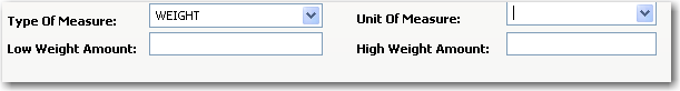 To use this restriction, select a type of measure, such as weight. Additional fields are then shown that relate to that measurement type.