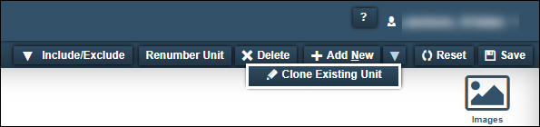 • In versions 2018.1 and after, click the dropdown arrow next to Add New and then select Clone Existing Unit.