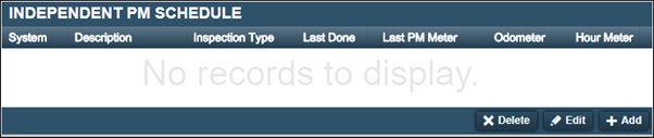 Before you can set up an independent PM schedule, PM Component Codes must be present. If they are not present, you must add them before you set up the schedule. On the unit, you must verify that the meter types are listed in that unit’s Meter Information section. If they are not listed, you must add them before you set up the schedule.