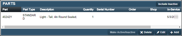 If you no longer use a part on a unit, you can mark that part as Inactive.