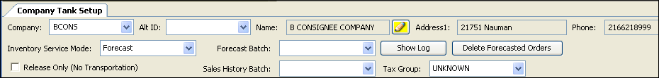 Viewing forecasted store information in the Company Tank Setup window