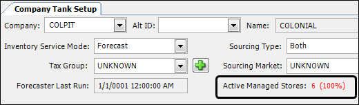 To view the Active Managed Stores count in the Company Tank Setup window, go to *Maintenance > Company Tank Setup.*