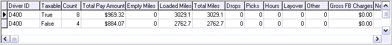 If you select 'Driver Pay' or 'Both' for the Process Option field, this grid will display the details of the retrieved Driver Pay records. |