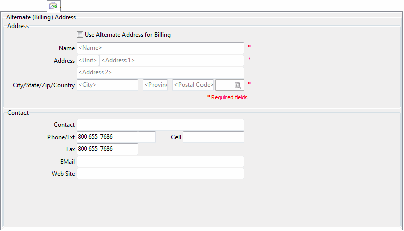 Enter the name of the primary contact person at this company. Additional contacts can be entered on the Billing Info Tab and on the Contacts Tab.