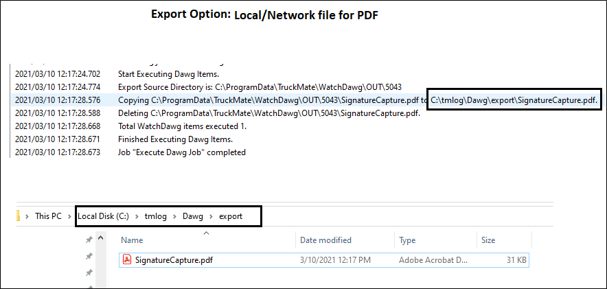 The PDF file format has been added into The DAWG Export Option. This means that now you can export a Crystal Report output in PDF format to FTP or to a Local/Network file. Now you can export the signed POD (Proof of Delivery) document out of TruckMate as a PDF document.