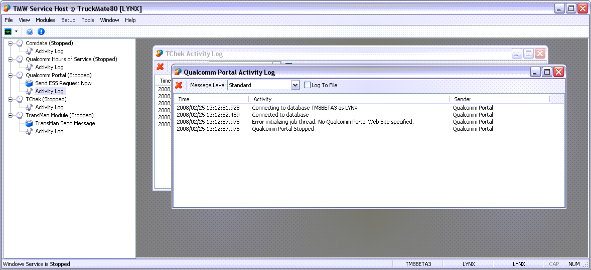 This application hosts and controls Trimble Transportation built Windows Services that control various aspects of the TruckMate software. The feature-set of this application is constantly expanding as TruckMate changes more of the core TruckMate applications into Windows Services that run "behind the scenes".