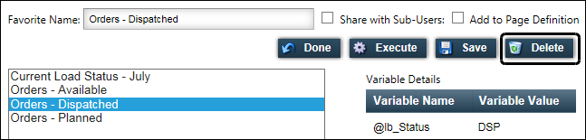 Deleting a favorite SQL report