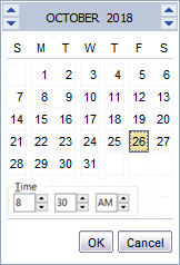 | The calendar form may differ from the one shown above. For example, in certain cases it is only necessary to select a date so the time fields would not be available. |