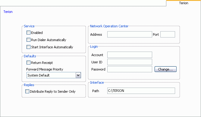 Check this box to enable the interface between the Communication Manager program and the Terion software. When a service is enabled, it can be stopped and started on the main Communication Manager screen.