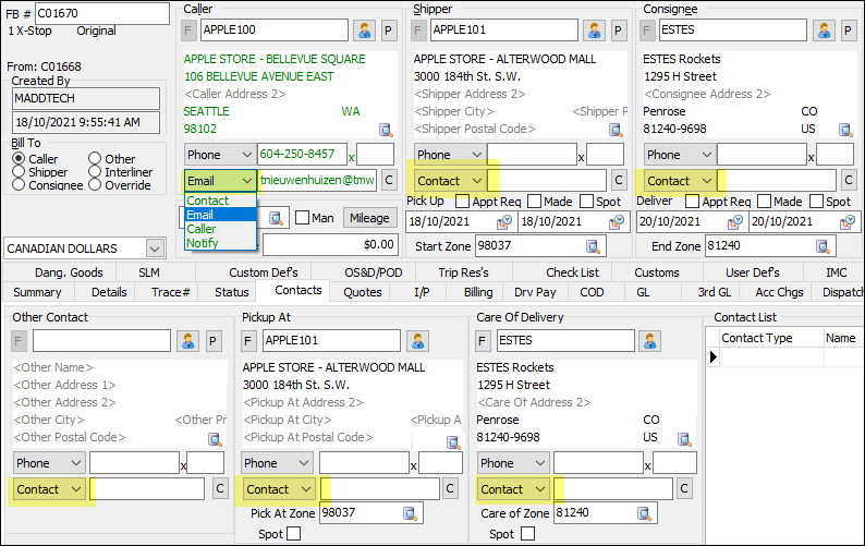 Now, you can define and save the contact type in Windows Registry. TruckMate uses the value as the default in: