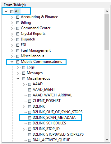 A new database table, D2LINK_SCAN_METADATA, stores trace list data entered in D2Link so that it can be processed in TruckMate via the Mobile Communications service.