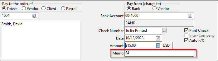 Previously, you could not edit a check memo if it originated from a driver pay statement. This has been resolved.