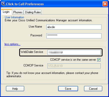 If necessary, contact your company’s phone administrator for the WebDialer Service IP address.
