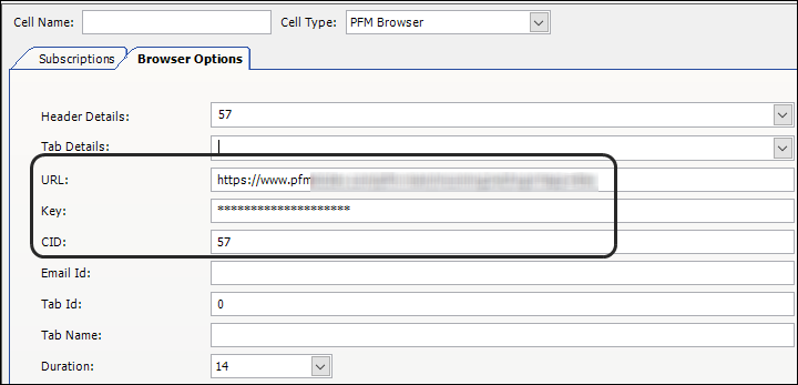 In the Cell Options Editor pane’s Cell Type field, select PFM Browser.