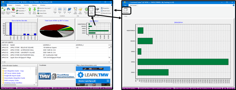 The Command Center launches directly from the desktop, pulling data from daily and historical information entered by operational staff including but not limited to: dispatching, billing, customer service and accounting departments. Managers can easily design customized pages of information, displayed in expandable cells that monitor the company’s unique key performance indicators.