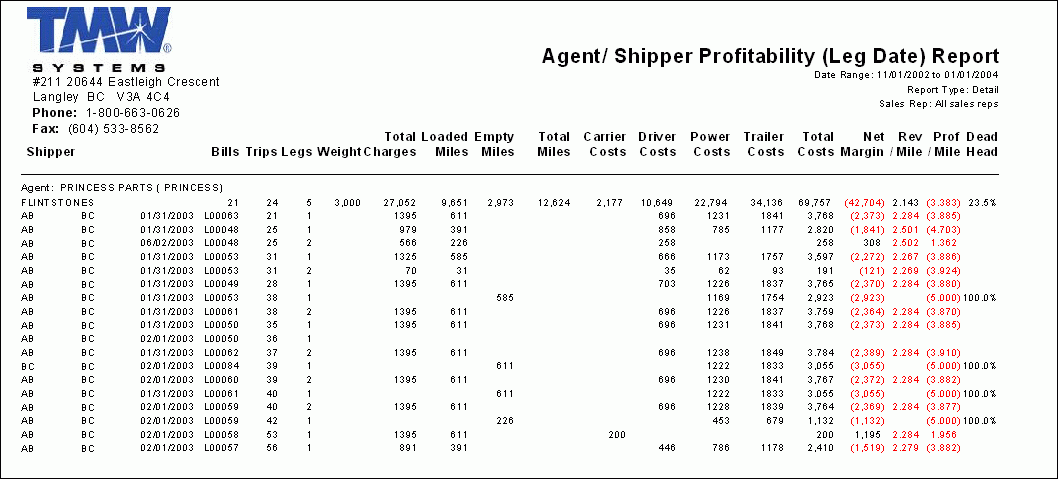 | This report has been reported as being EXTREMELY COMPUTER INTENSIVE… in its earlier versions.If you suspect the report takes an inordinate amount of time to run, and/or the report appears to affect other users response times, please contact TMW Systems Support team for an updated report.This report should execute rather effortlessly in about a minute or less. |