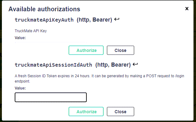 For POST calls in the future, TruckMate will only continue to support payload validation through "sessionId" until the release of TruckMate 2022.1.