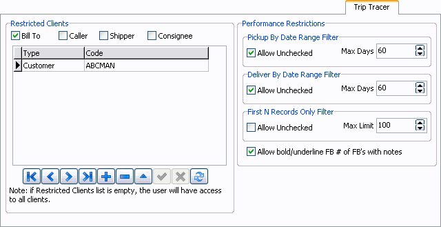 New users will by default have several Tabs disabled in the Customer Service program (and other important applications). Make sure that you use the Security tab to grant and/or disallow access to the areas of TruckMate that this user will need to work with.
