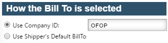 • To force the system to use the default Bill To company specified for the shipper in its company profile, select Use Shipper’s Default BillTo.
