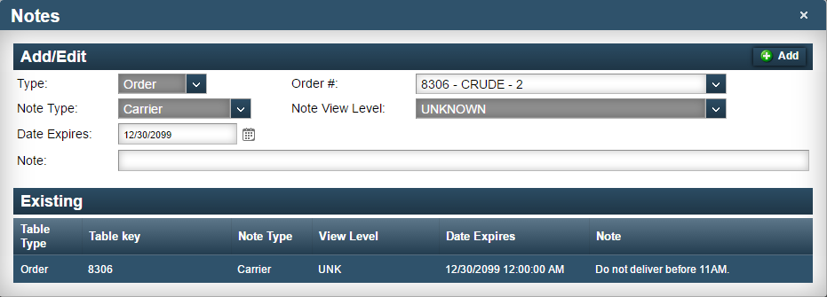 Access order, stop, and freight information for the selected order on the Crude Load Details page -