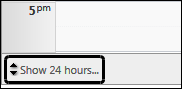 You can use the up and down arrows at the bottom of the calendar to show Business hours or 24 hours.