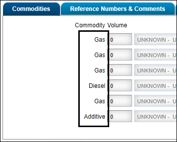 By default, the Fuel Order Entry page shows the commodity name, such as Unleaded 82. If you want, you can change the name that displays on the page to be the commodity class. The system uses the commodity class specified by the [FuelDispatch]CommoditySubclass INI setting.