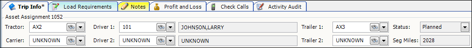• Displays the IDs of the assigned resources at the top of the Trip Info tab.