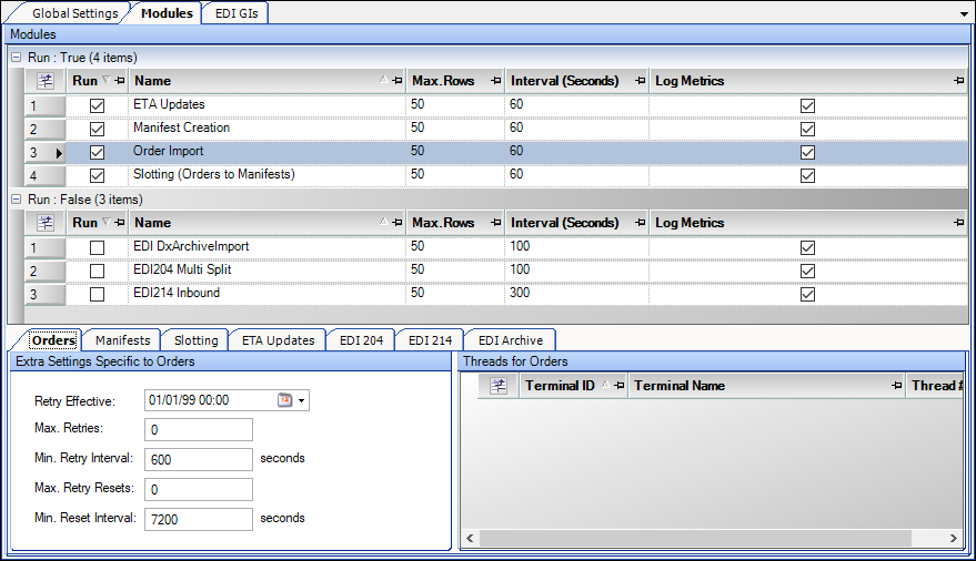 For all modules except EDI 204, the Threads table must be configured for the module to run.