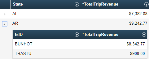 If you create this type of drill-down report, the Generated Report section displays a collapsed list of the customer’s states.