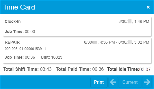 The Time Card also shows you your total shift time, total paid time, and total idle time on an hourly wage basis.