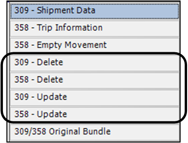 List options depend on whether you are working with an ACE or ACI eManifest, and whether the update is a 309 or 358 update.