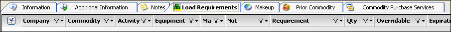 Displays requirements/conditions that must, or should, be met when assigning resources (driver, tractor, trailer, or carrier) to an order that involves transport of this commodity.