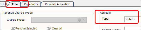 All rebate rates must be based on a charge type that has Rebate selected in the Accruals Type field.