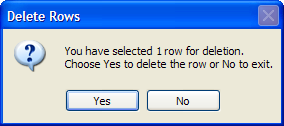4. In the Delete Rows confirmation message, click Yes to complete the removal.