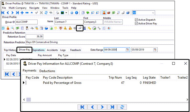 Indicates whether the Driver is included in the Driver Pay record information and has GL Accounts setup to handle his Pay information. |