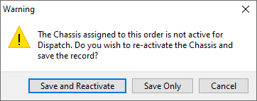 This will NOT save the intermodal record or re-activate the paired container/chassis. |