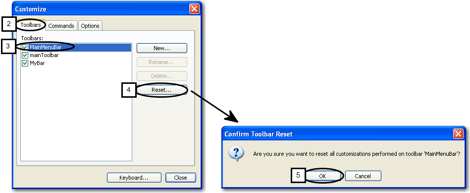 5. At the Confirm Toolbar Reset dialog box, click OK to confirm.