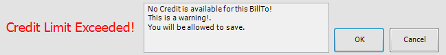 When you save an order while credit checking is turned on, the system checks whether the order will exceed the Bill To’s credit limit. If the order does exceed the Bill To’s credit limit, the Credit Check window appears.