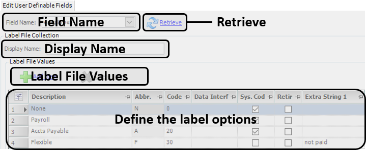 The Edit User Definable Fields window allows you to edit labels associated with the label file. You can do the following: