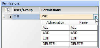 Note: The New, Open, and Save icons at the top of the window do not control adding and removing permissions within the window. |