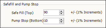 Use this section to define Safe Fill and Pump Stop percentages. This illustration shows the default and recommended field values for this section.