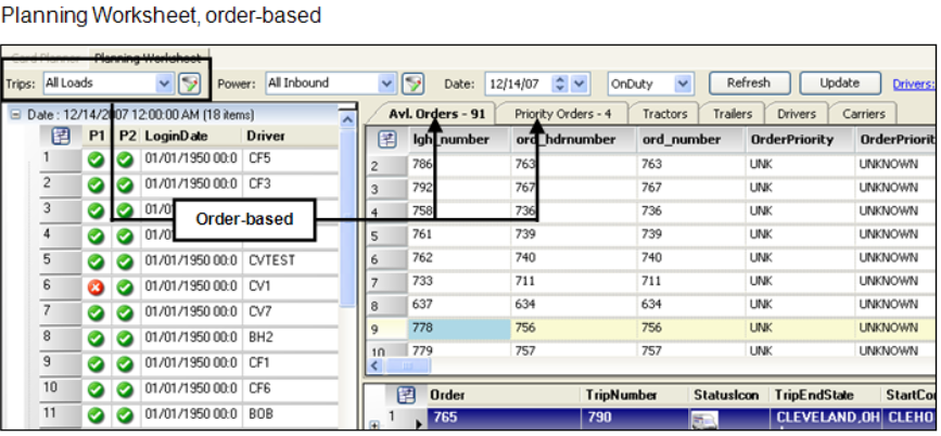 An order-based view filters order data displayed on the Avl. Orders and Priority Orders tabs.