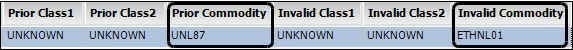 The Invalid Prior Commodity Maintenance window contains two sections.