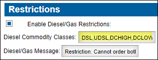 In the Restrictions section, select the Enable Diesel/Gas Restrictions checkbox.